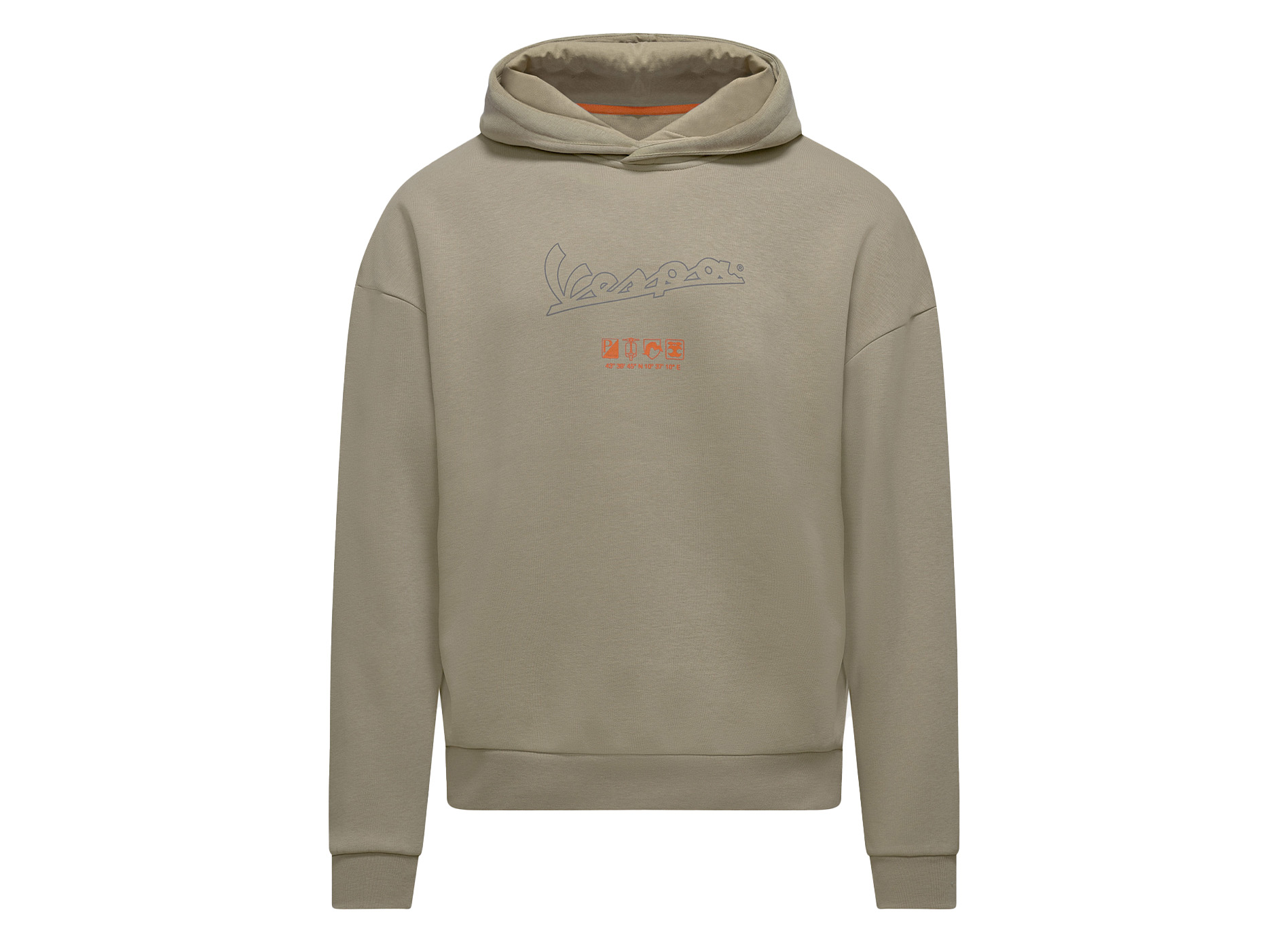 Comfortable and warm hoodie made from soft, brushed cotton fabric. The iconic Vespa logo and the new Vespa DEC graphic adorn the front, while the inside features an exclusive printed label.