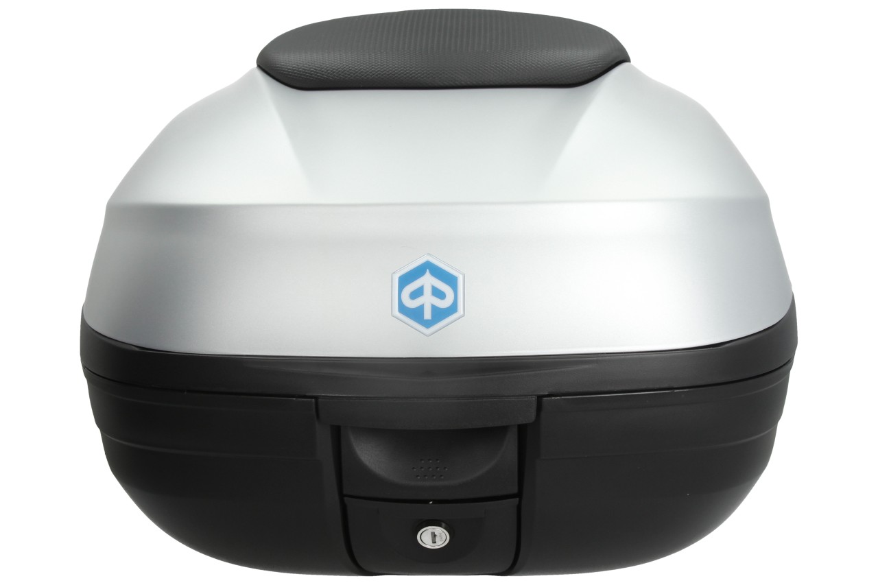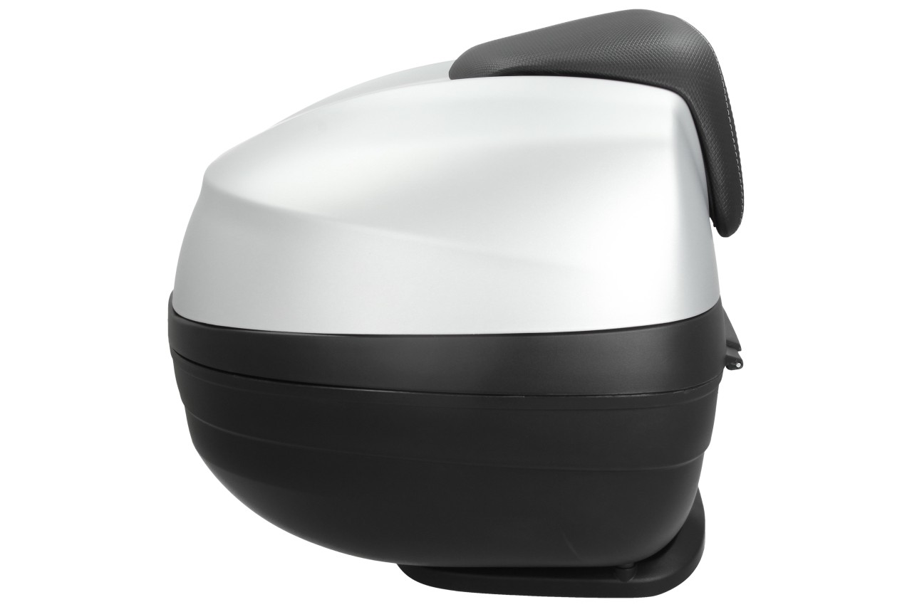 Top Case with quick mounting system. Provides space for a modular helmet. Top case painted in vehicle color, with comfort back cushion for the passenger, in the same material and finish of the seat.