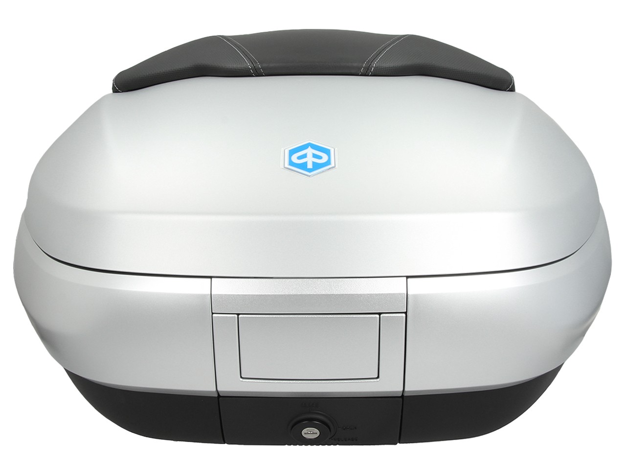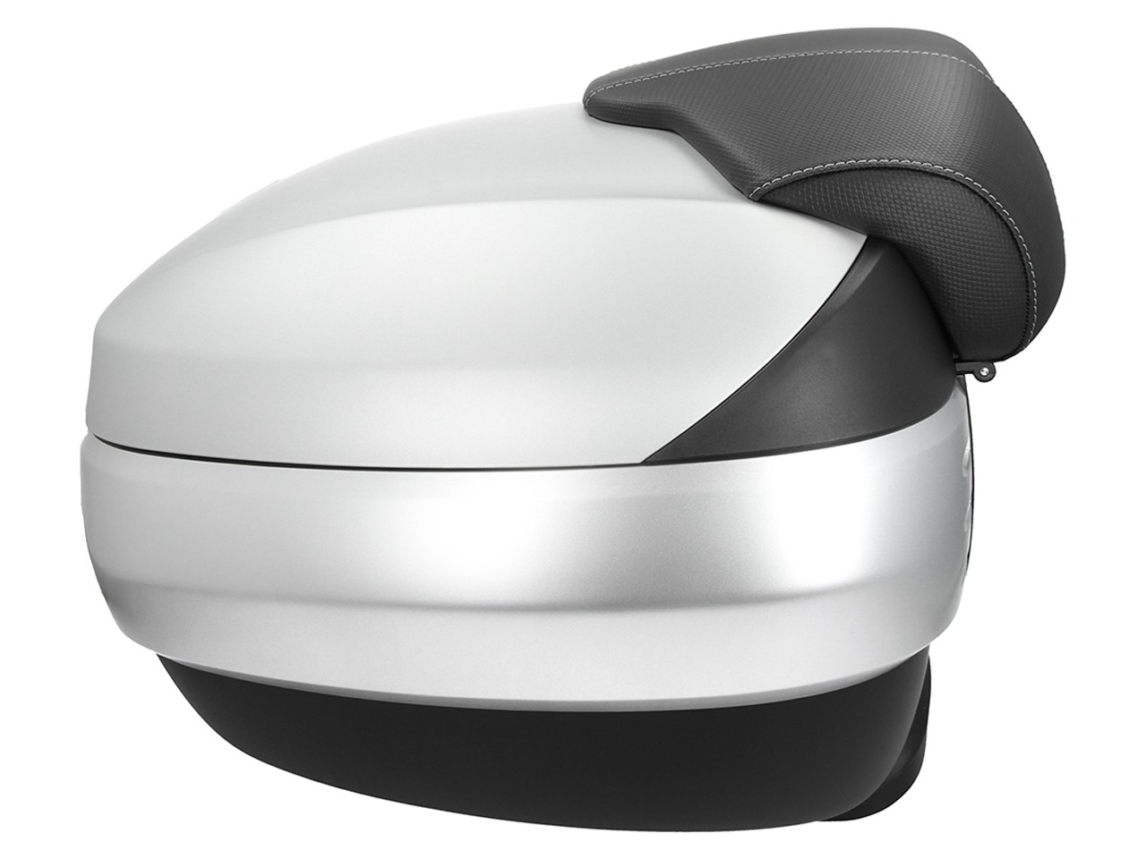 Spacious, with quick mounting system. Provides space for 2 modular helmets. Top shell painted in vehicle color, with comfort back pad for the passenger, in the same material and finish of the seat. Document pocket inside and elastic straps to stabilize the luggage.