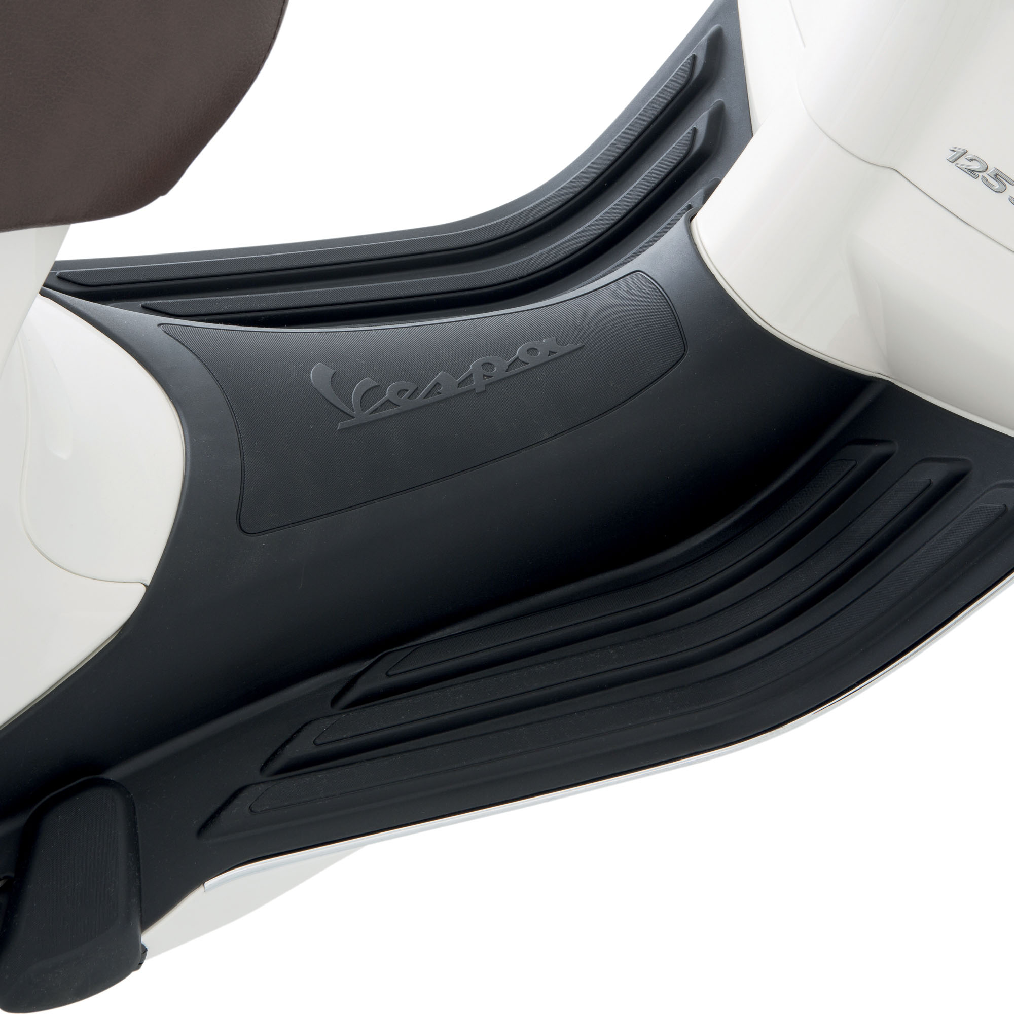 Protect your beloved Vespa with the original floor mat in elegant black, specially developed for Primavera, Sprint and Elettrica. This hard-wearing rubber mat not only ensures that your vehicle is protected from unsightly paint scratches, it also gives your Vespa a touch of style and class.
